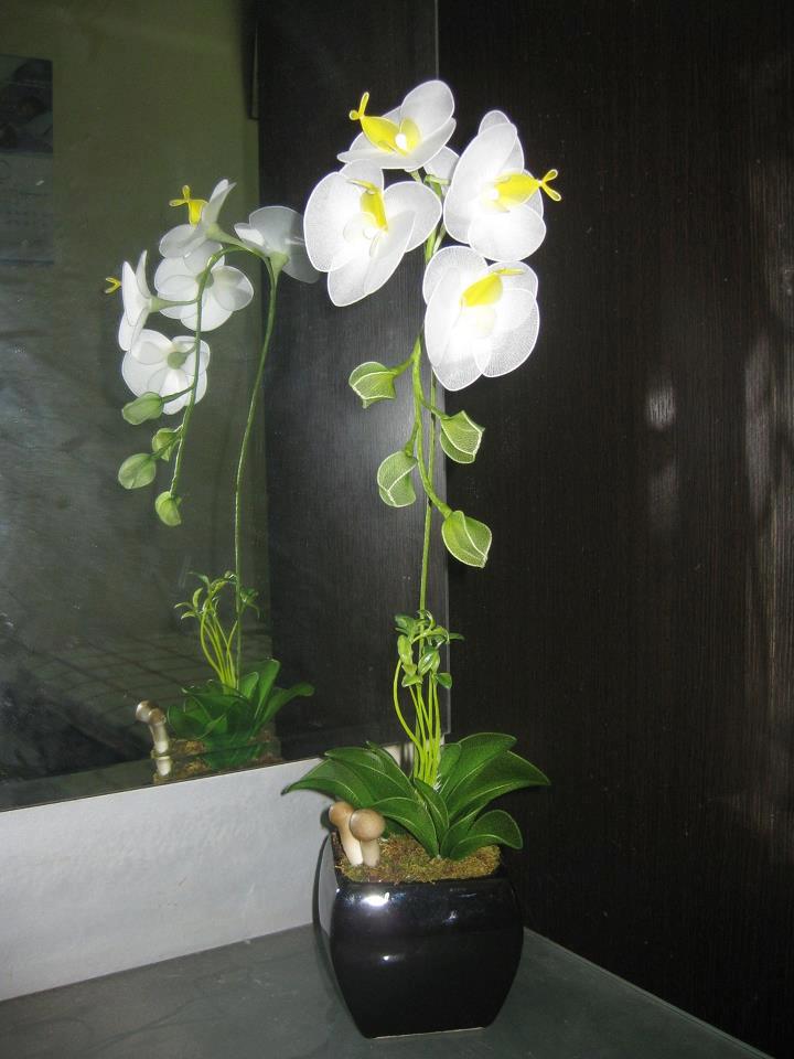 Thành quả chậu hoa lan hồ điệp bằng vải voan